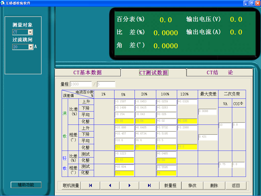 ⑵試數(shù)據(jù)可以通過人工錄入,也可調(diào)用本公司一體化校驗裝置的測試數(shù)據(jù),實現(xiàn)互感器校驗、管理一體化;