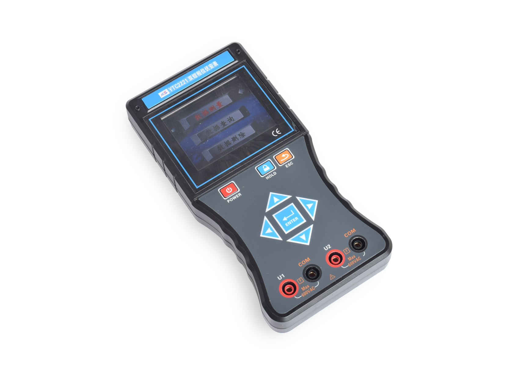 YTC2221數(shù)字雙鉗相位伏安表是專為現(xiàn)場測量電壓、電流及相位而設(shè)計的一種高精度、低價位、便攜手持式、雙通道輸入測量儀器。用該表可以很方便地在現(xiàn)場測量U-U、I-I及U-I之間的相位,判別感性、容性電路及三相電壓的相序,檢測變壓器的接線組別,測試二次回路和母差保護系統(tǒng),讀出差動保護各組CT之間的相位關(guān)系,檢查電度表的接線正確與否等。采用鉗形電流互感器轉(zhuǎn)換方式輸入被測電流,因而測量時無需斷開被測線路。測量U1-U2之間相位時,兩輸入回路完全絕緣隔離,因此完全避免了可能出現(xiàn)的誤接線造成的被測線路短路、以致燒毀測量儀表。
