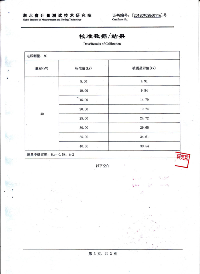 測量電壓范圍:0 - 40kV(特殊電壓可定制)