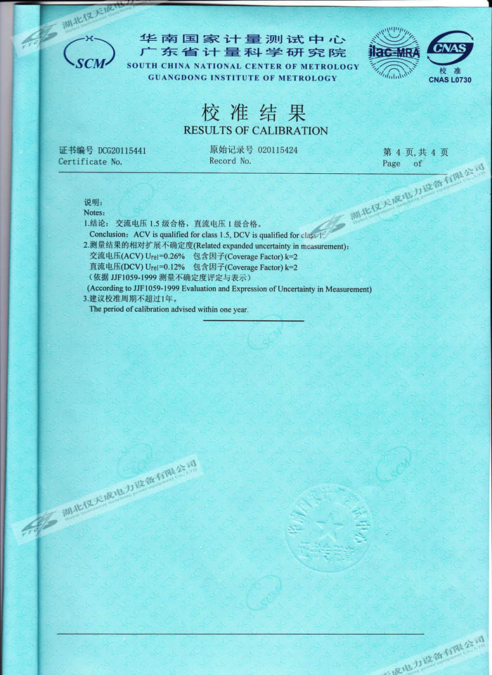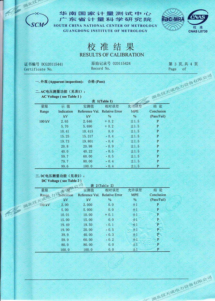 轉(zhuǎn)載:"YTC8107-100電容分壓器高壓測(cè)量系統(tǒng)的資質(zhì)證書(shū)" 請(qǐng)注明來(lái)源于儀天成電力。 更多技術(shù)問(wèn)題請(qǐng)致電儀天成電力客戶(hù)服務(wù):027-87876585,技術(shù)部專(zhuān)線:027-87876585,在線客服:719388481