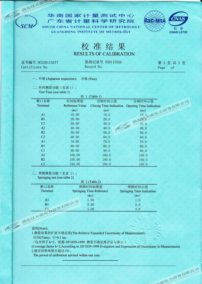 轉載:"YTC3980斷路器分析儀的資質證書" 請注明來源于儀天成電力。 更多技術問題請致電儀天成電力客戶服務:027-87876585,技術部專線:027-87876585,在線客服:719388481
